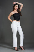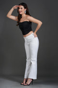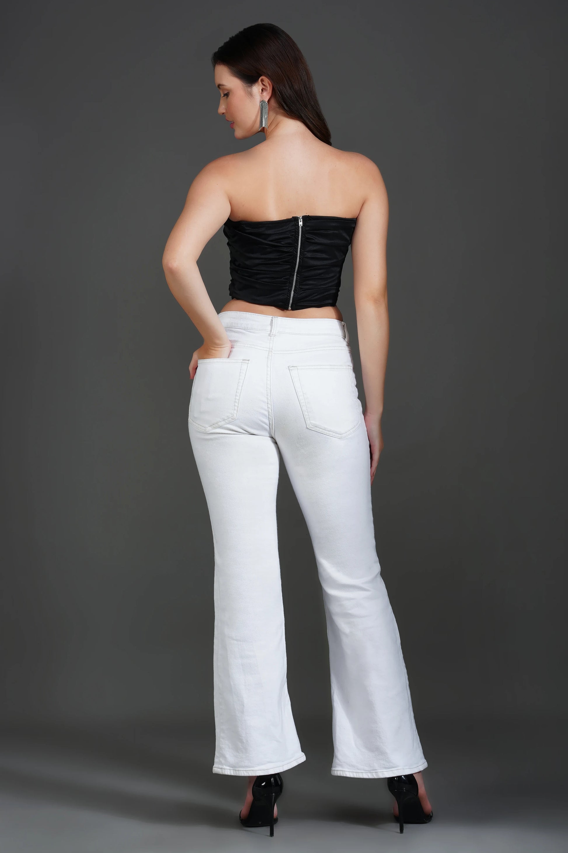 Design: Features a chic ruched detail that enhances the silhouette, a strapless tube design for a sleek, modern look.