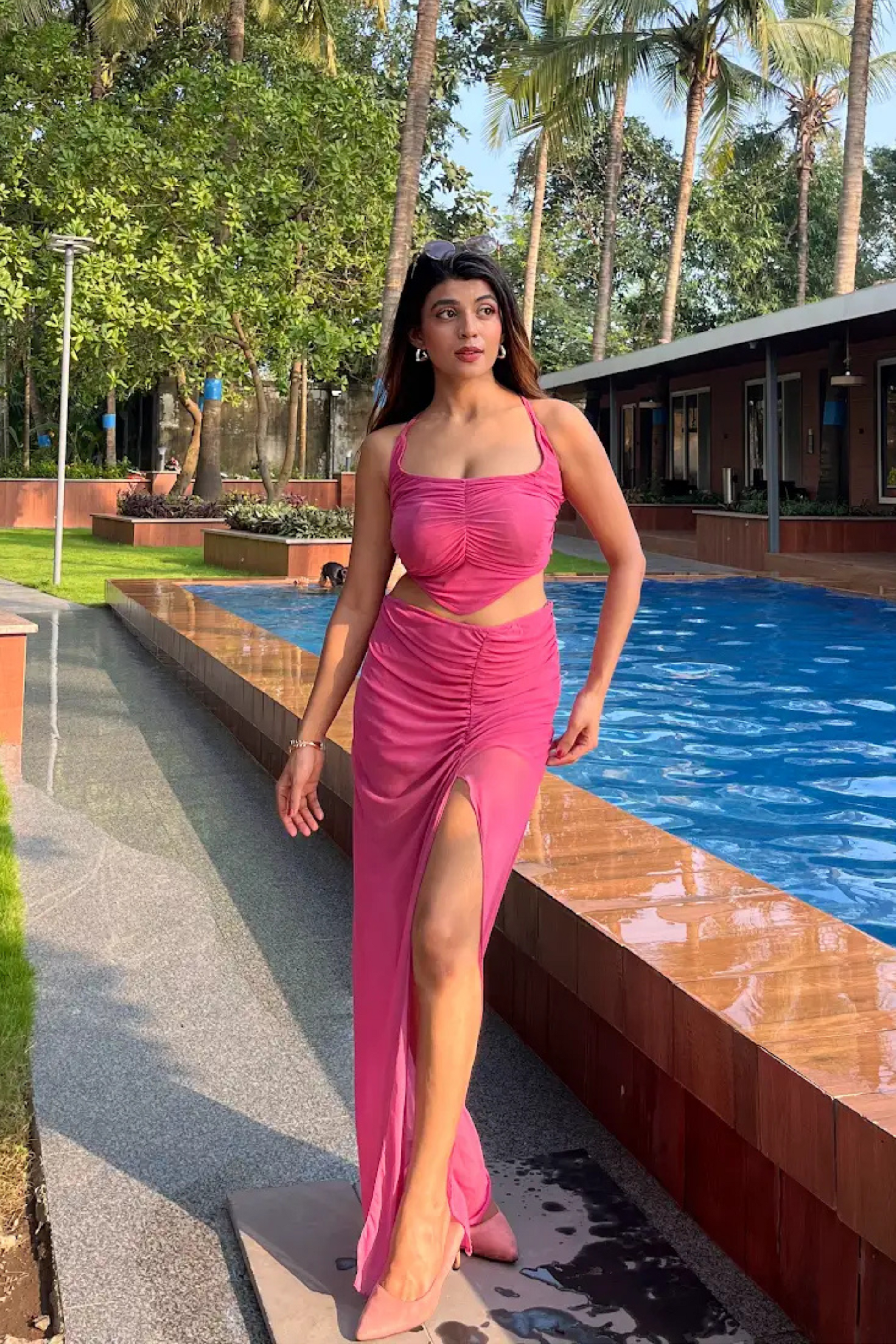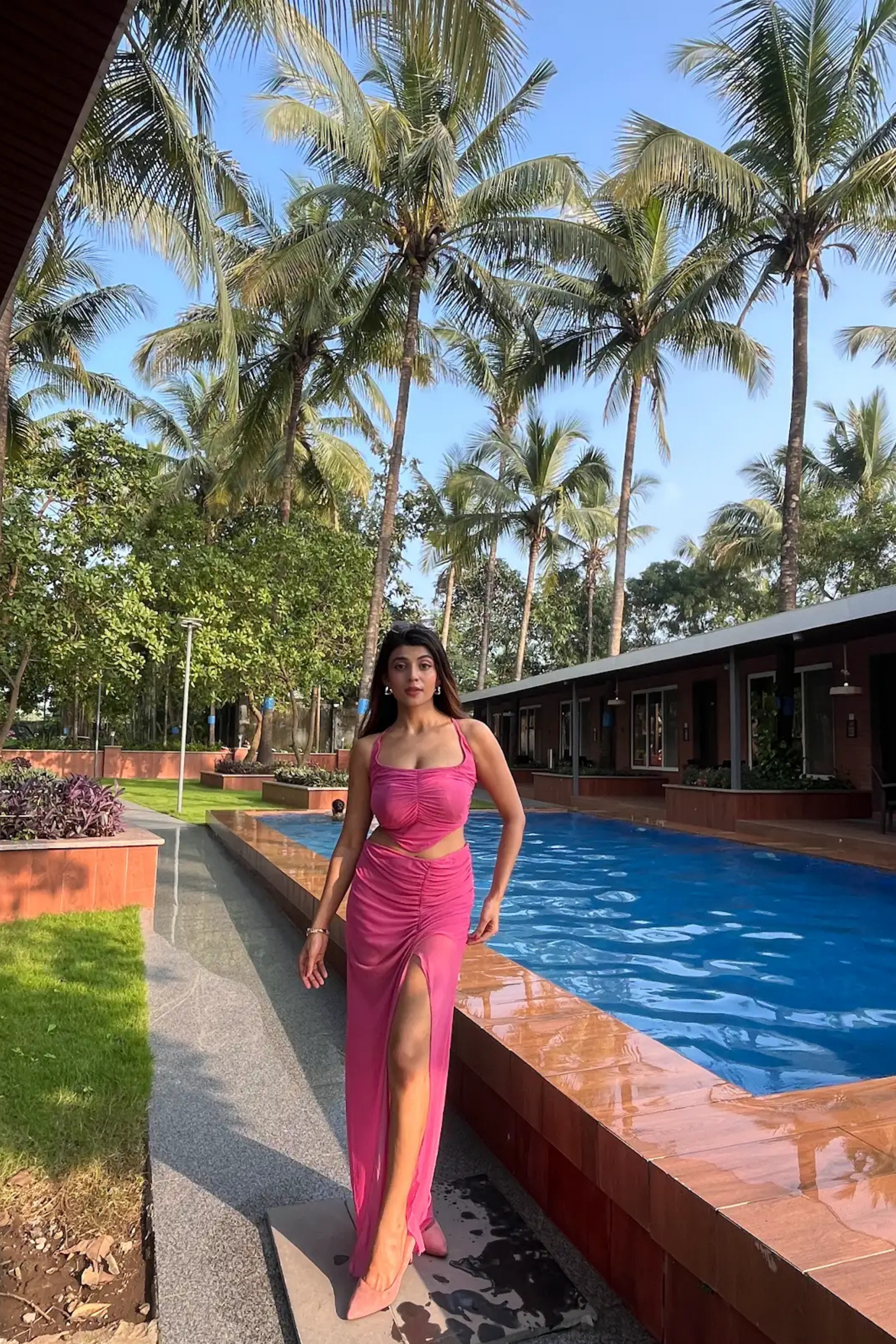 The sheer overlay adds a trendy and elegant touch, making it a perfect blend of chic and playful.