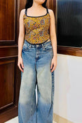 Mustard cotton printed corset top